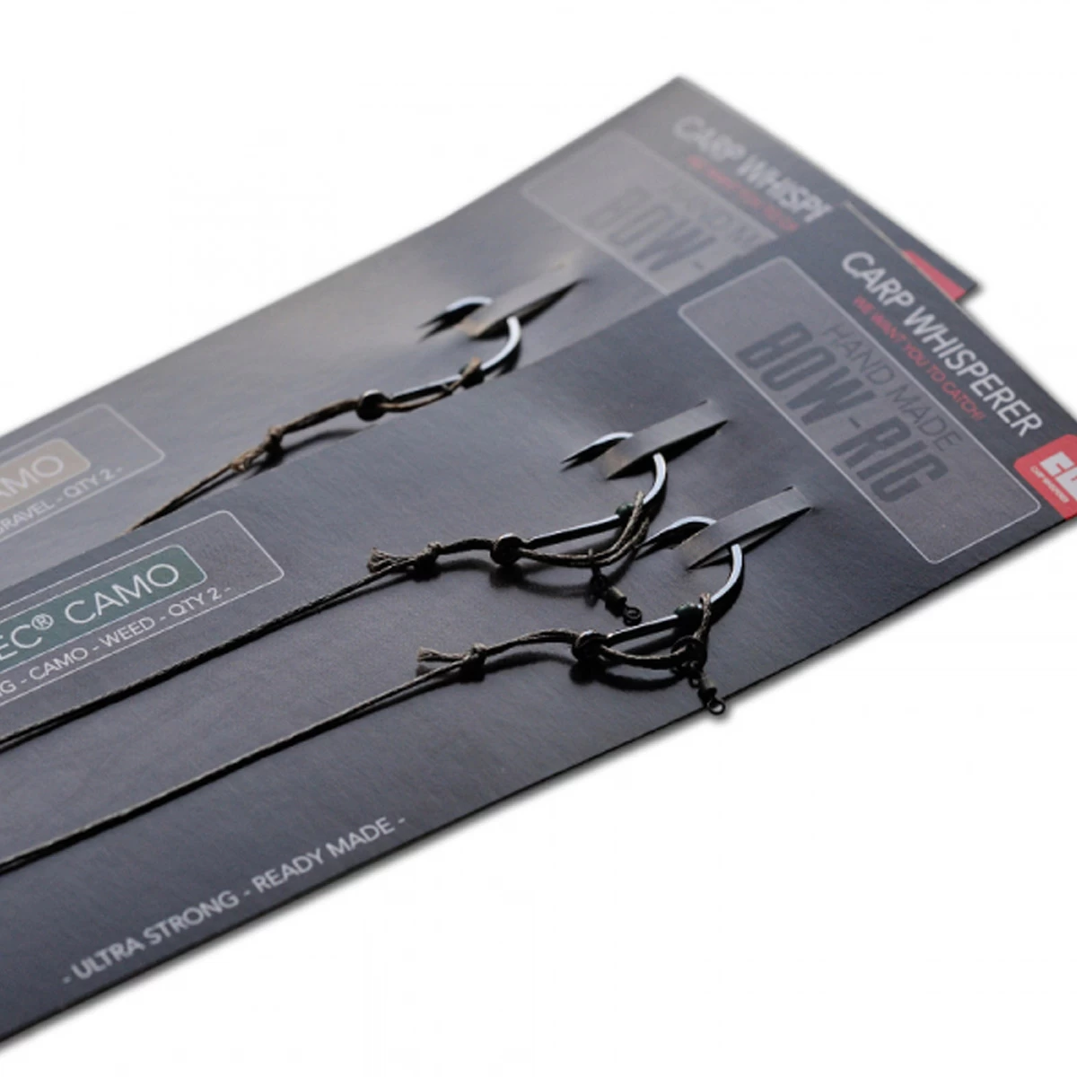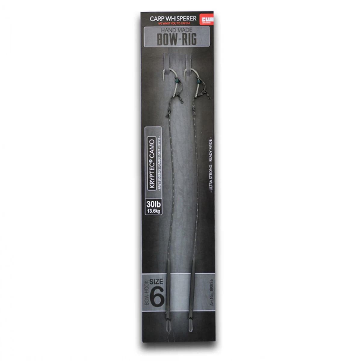 De kant en klare Bow rig nu online te bestellen! De Bow rig is misschien wel de meest effectieve karper rig die je kunt gebruiken voor het vissen met een wafter presentaties. Deze kant en klare onderlijn is gemaakt om zelfs de meest voorzichtige karper alsnog te vangen. De karperhaak is ingelust en mocht deze bot zijn geworden tijdens het vissen dan is de vishaak heel eenvoudig te vervangen. Het is een kwestie van oude haak uitlussen en nieuwe haak inlussen. Dit maakt het tevens mogelijk om niet alleen de Bow haak te gebruiken, maar ook is deze ready made rig prima te gebruiken met de Circle haak. De speciale vorm van deze karperhaak zorgt ervoor dat deze goed in de bek blijft zitten waardoor je nagenoeg geen losschieters meer krijgt in situaties met veel wier en zeer zachte karperbekken.