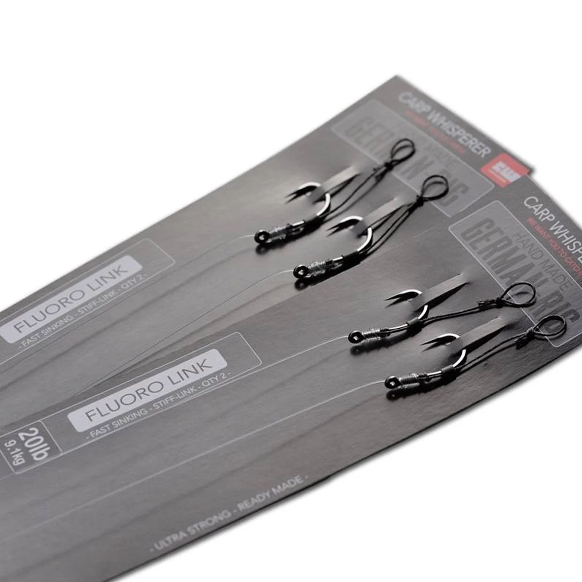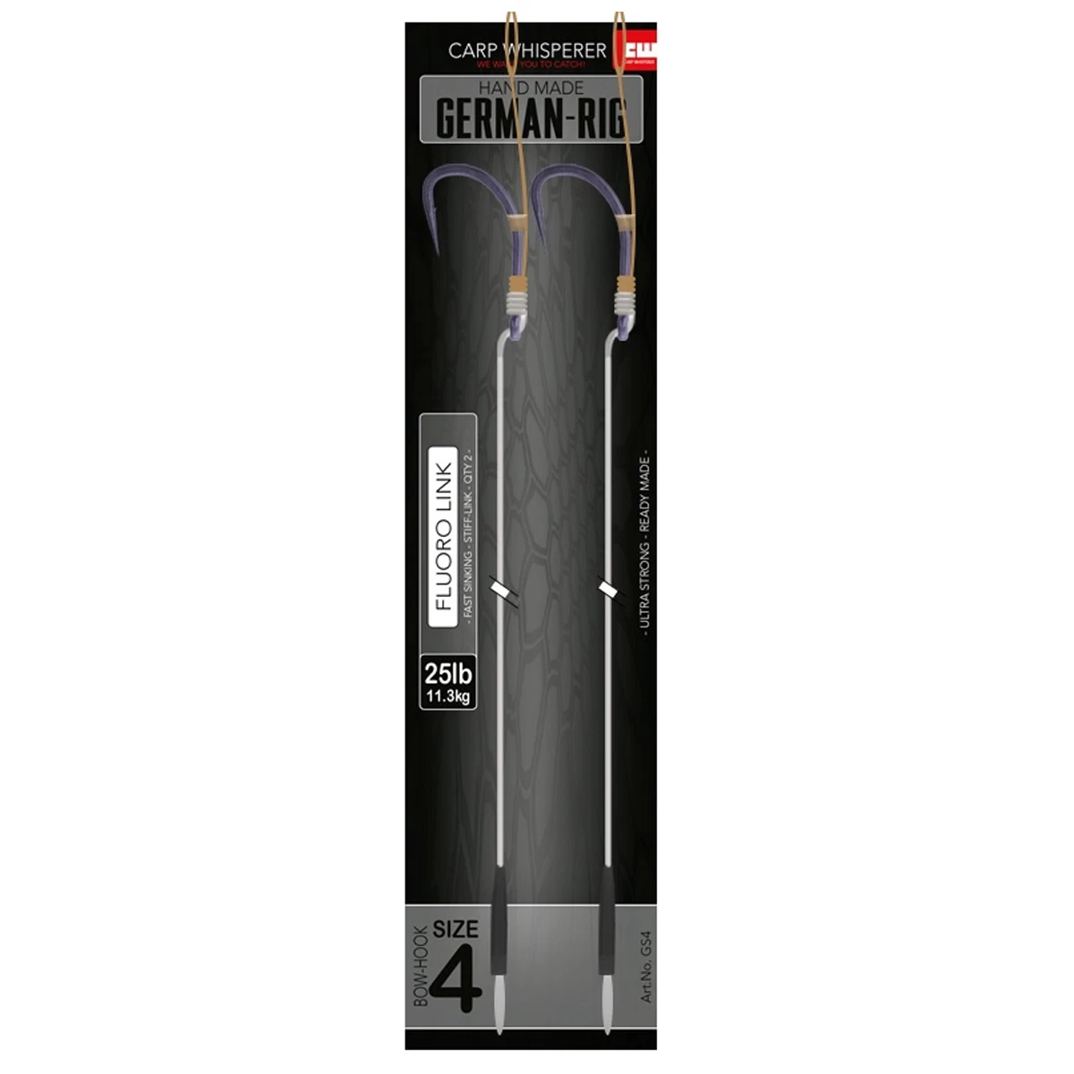 • Gemaakt met; Fluoro link, tungsten anti tangle sleeve, bow haak