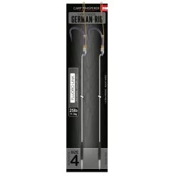 De German Stiff rig is een karperonderlijn die vrijwel niet in de war raakt. De German Stiff Rig is gemaakt van stijf fluoro carbon onderlijnmateriaal. Door het grote reset vermogen van deze stugge rig komt is deze montage ook zeer geschikt op wateren met veel witvis of kreeft. Daarnaast hebben we de onderlijnmontage afgewerkt met een tungsten hooklink sleeve. Met de bedoeling dat de rig nog beter tegen de bodem wordt gedrukt. Het mooie aan een fluoro carbon karper rig is dat deze onzichtbaar is voor de vis. Hierdoor is deze onderlijn ook zeer geschikt om te gebruiken op zeer heldere wateren waar camouflage van de laatste meter belangrijk is. Doordat de hair is gemaakt van soepel materiaal zal het haakaas zo natuurgetrouw als mogelijk zich gedragen. Wat natuurlijk de presentatie alleen maar ten goede komt! De German stiff rig werkt het beste met zinkende boilies en snowman presentaties. Door het gewicht van het haakaas wordt de haak als het ware direct naar de onderlip gedrukt. Al met al voor deze onderlijnmontage werkt de Bow haak het beste. Zorg er wel voor dat je tenminste 1 cm ruimte houdt tussen haak en de boilie op de hair. Het mooie is dat je onze kant en klare rigs heel eenvoudig kunt bevestigen op onze kant en klare leaders. Alle leaders zijn namelijk voorzien van een Quick Change Swivel. Daardoor gaat het bevestigen van de rig aan de leader heel eenvoudig. Hang de lus van de German Stiff rig in de Quick Change Swivel. Schuif vervolgens de anti tangle sleeve op zijn plek en je kunt karpervissen!
