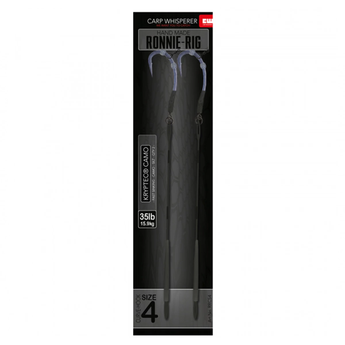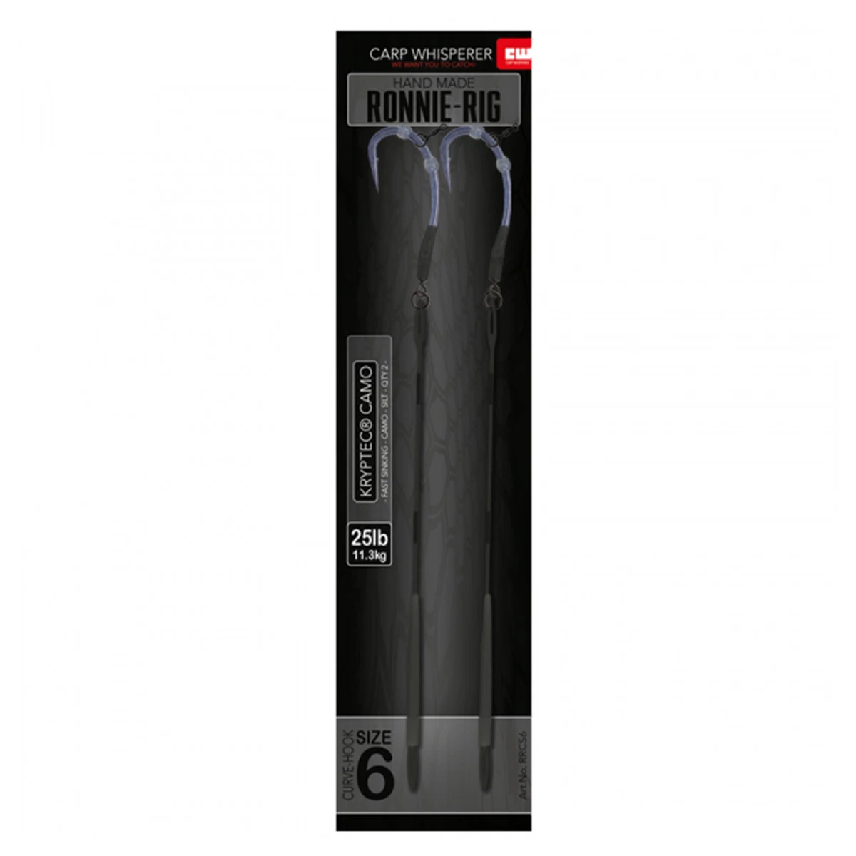 De kant en klare Ronnie rig! De Ronnie rig is misschien wel de meest effectieve pop up montage die je kunt gebruiken voor het vissen op karper. Deze rig is gemaakt om met drijvend haakaas te vissen. Het haakaas in de meeste gevallen een pop up boilie kun je eenvoudig met een stukje floss draad of een stukje fluoro carbon bevestigen aan de micro ring swivel. Deze kleine wartel geeft het haakaas volledige bewegingsvrijheid waardoor je een zeer natuurlijke aasaanbieding krijgt. Tevens kan de haak bij opname snel naar de onderlip draaien. Wat de inhaking sterk ten goede komt.