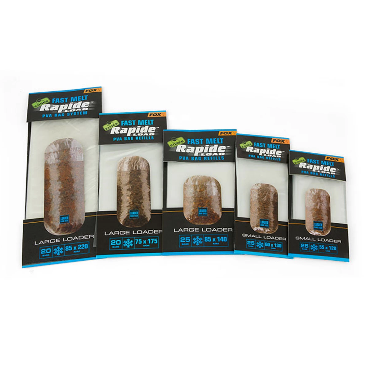 De Rapide PVA Refills zijn de navullingen voor het Rapide PVA System. De fast melt variant is voor gebruik in winter of ondiep water. De Refill bags hebben een 2D afbeelding op de voorzijde die de ideale afmeting PVA bag weergeeft die ermee te maken is.